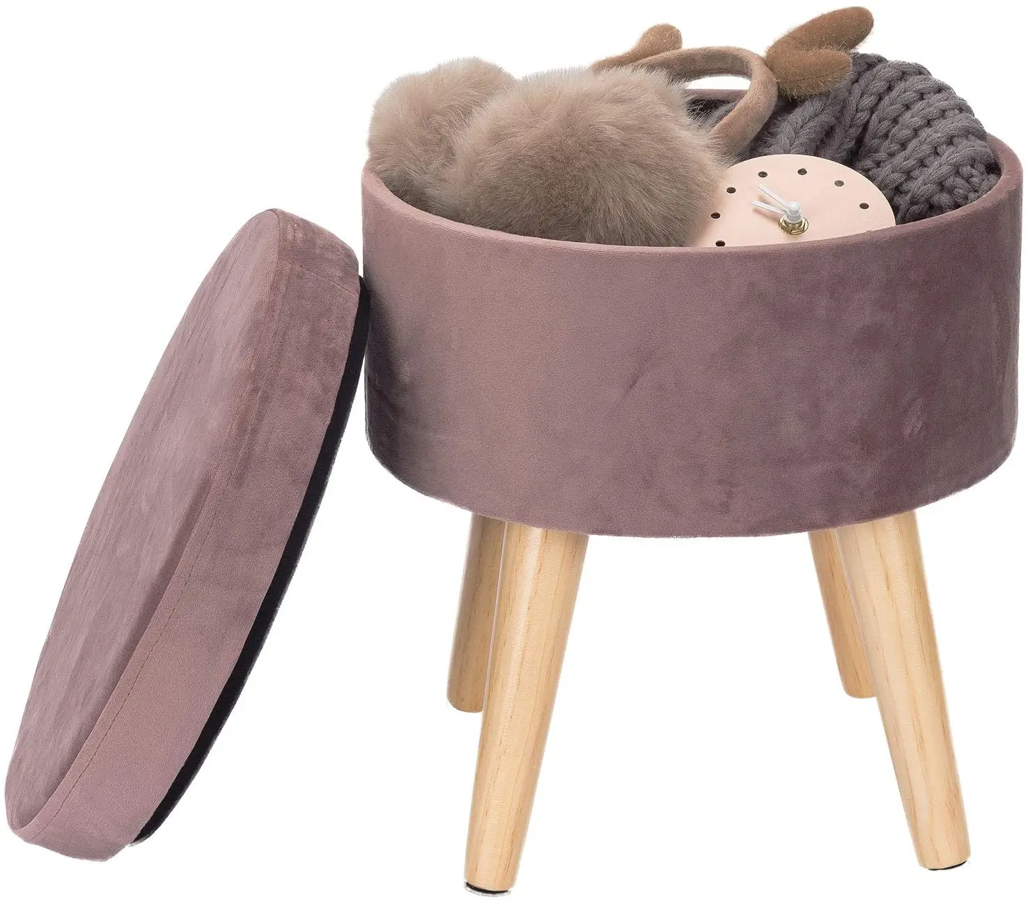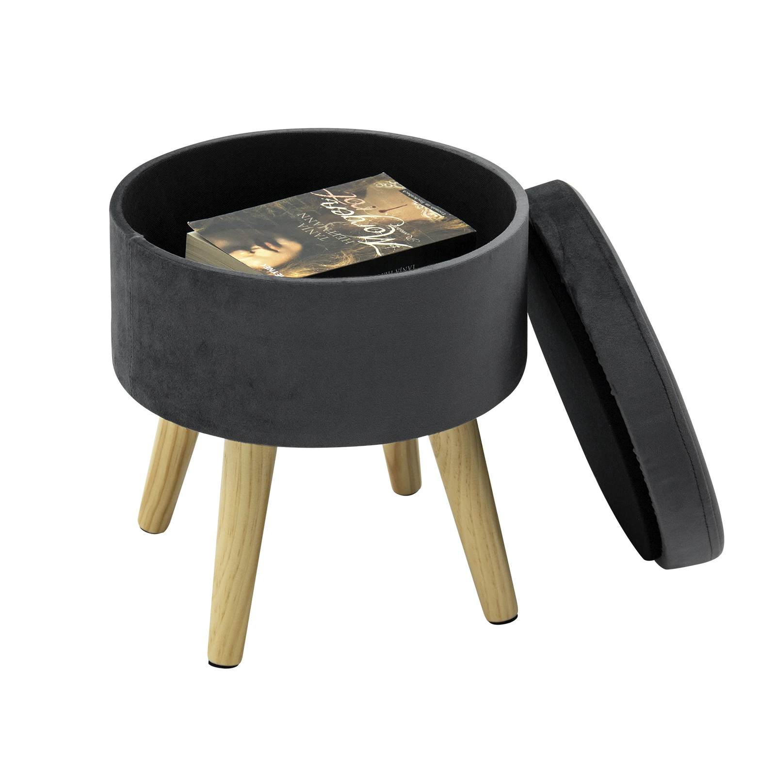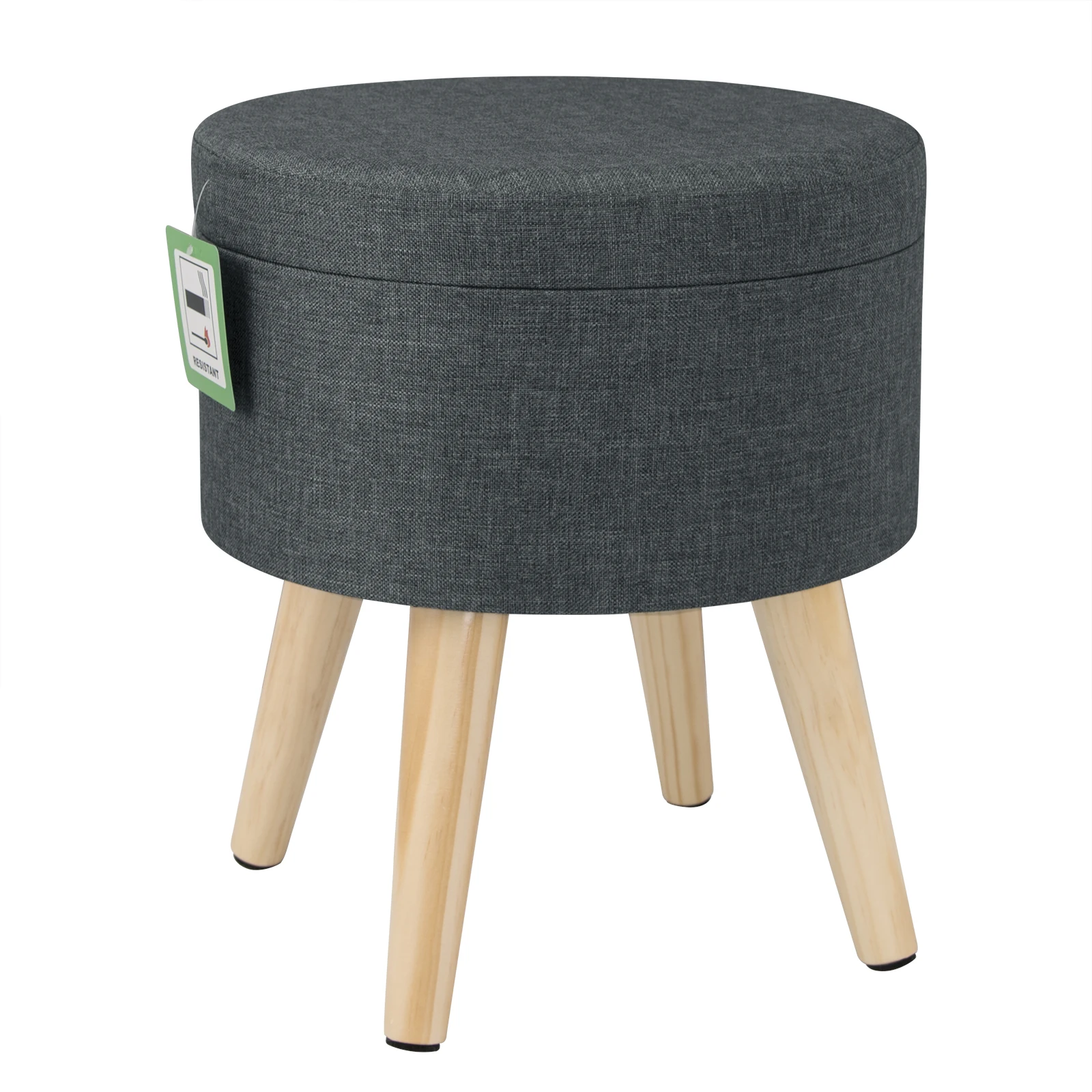 1PC Linen Velvet Storage Ottoman Chair Stool Upholstered Footstool Round Pouffe Chair Multifunction with Removable Cover Home