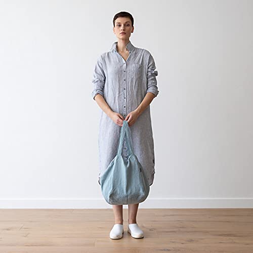 LinenMe Borsa da spiaggia in lino Stone Blue Lara