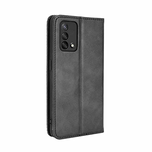 LINER Cover per Oppo A74 4G, Classico Retro Design Flip Custodia in PU Pelle Premium Portafoglio Slot per Schede/Supporto Video/Chiusura Magnetica Antiurto Case - Nero