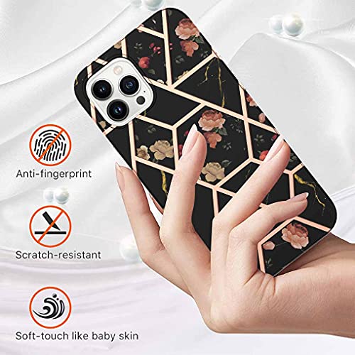 LINER Cover per iPhone 13 PRO Max 6.7, Custodia Protettiva Ultra Sottile ed Elegante in Silicone TPU Flessibile, Glitter Marmo Cover Antiurto per iPhone 13 PRO Max 6.7 - Fiore Nero