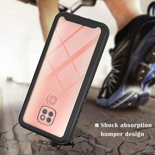 Liner Cover per Motorola Moto E7 Plus / G9 Play, Rugged Custodia Trasparente Full Body Antiurto Rigida PC Soft TPU Sottile Bumper Silicone Protettiva, Staccabile Cellulare Case - Nero/Clear