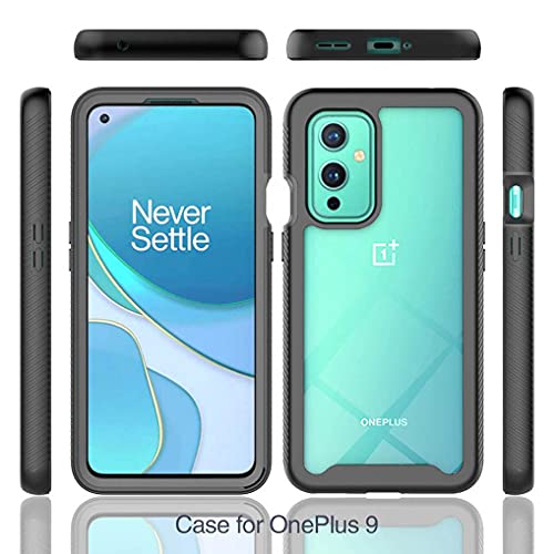 Liner Cover per OnePlus 9, Rugged Custodia Trasparente Full Body Antiurto Rigida PC Soft TPU Sottile Bumper Silicone Protettiva, Staccabile Cellulare Case per OnePlus 9 - Nero/Clear