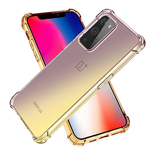 LINER Cover per OnePlus 9 PRO Cover, Ultra Sottile Custodia in TPU a Gradiente Colori, Trasparente Silicone Morbido Case Antiurto Cover per OnePlus 9 PRO, Nero/Oro