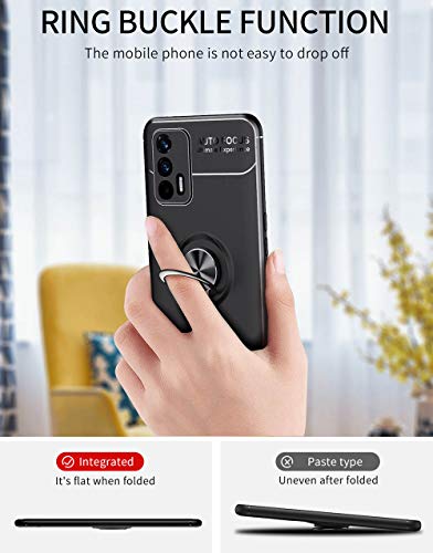 Liner Cover per Realme GT 5G, Protettiva Case con 360° Ring per Supporto Auto Magnetico, Ultra Sottile Antiurto AntiGraffio Protettiva Custodia Sottile Cellulare Guscio Bumper - Oro Rosa/Nero