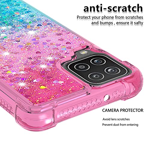 Liner Cover per Samsung Galaxy M32, Custodia in Liquido Quicksand con Brillantini, Trasparente Silicone Morbido Ultra Sottile TPU Antiurto Case per Samsung Galaxy M32, Rosa/Blu