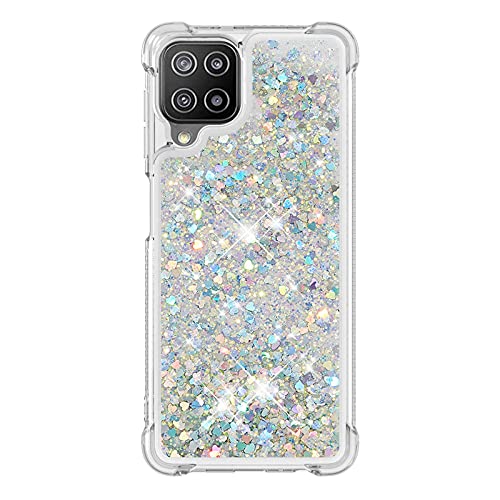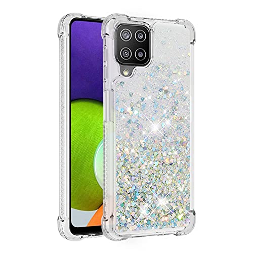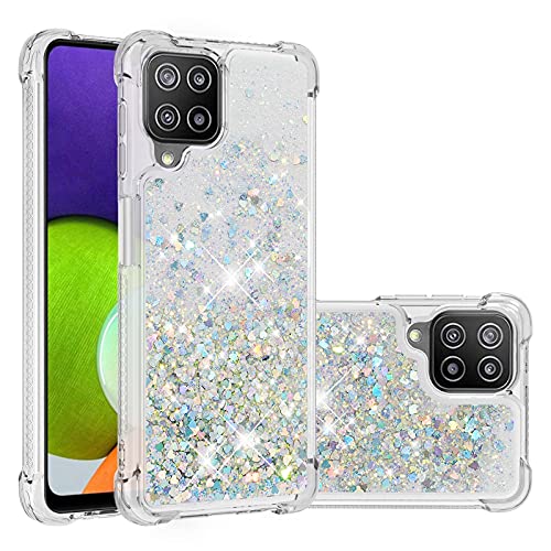 Liner Cover per Samsung Galaxy M22 / Samsung Galaxy A22 4G, Custodia in Liquido Quicksand con Brillantini, Trasparente Silicone Morbido Ultra Sottile TPU Antiurto Case, Argento
