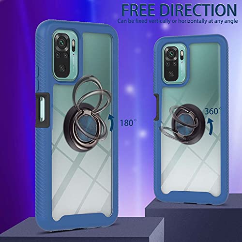 Liner Cover per Xiaomi Redmi Note 10 4G/Redmi Note 10S, [con Anello Supporto] Custodia Trasparente Full Body Antiurto Rigida PC Soft TPU Sottile Silicone Protettiva Staccabile Cellulare Case - Blu