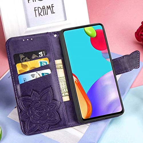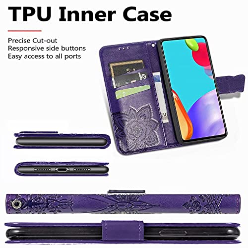 LINER Pelle Cover per Oppo A74 4G, Elegante Motivo a Farfalla Design Flip Custodia in PU Premium Portafoglio, Antiurto Case Cover con Funzione Stand/Slot per Schede - Viola Scuro