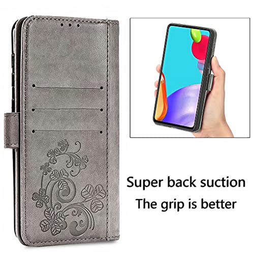 LINER Pelle Cover per Xiaomi Poco F3/Xiaomi Mi 11i 5G, Elegante Motivo a Trifoglio Design Flip Custodia in PU Premium Portafoglio, Antiurto Case Cover con Funzione Stand/Slot per Schede - Grigio