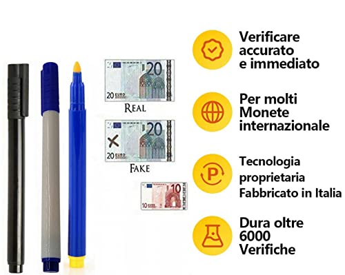 Verifica immediata delle banconote. L'inchiostro unico nella penna del rilevatore identifica rapidamente e facilmente le note