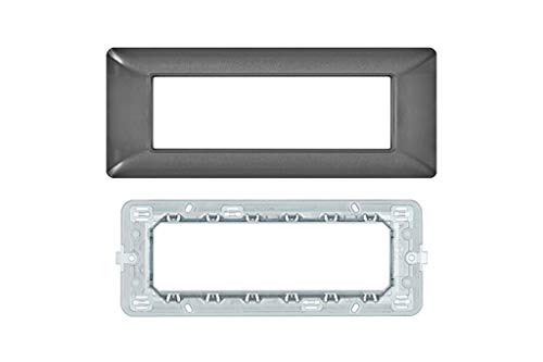 LineteckLED -Serie Completa di Placche per Interruttori Prese- Kit Placca 6 Posti 6M Compatibile matix + Supporto 6 Posti Compatibile matix (GRIGIO)
