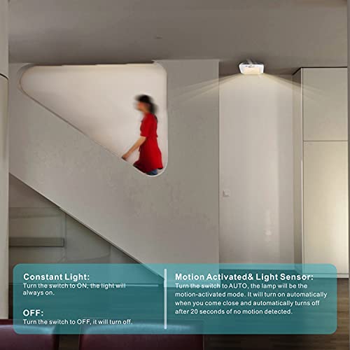 Luce costante: girare l'interruttore su ON, la luce sarà sempre accesa. Portare l'interruttore su OFF, si spegnerà. La plafoniera a LED fornisce 180 lumen di luce intensa per le aree scure per assicurarti di non inciampare mai nell'oscurità.