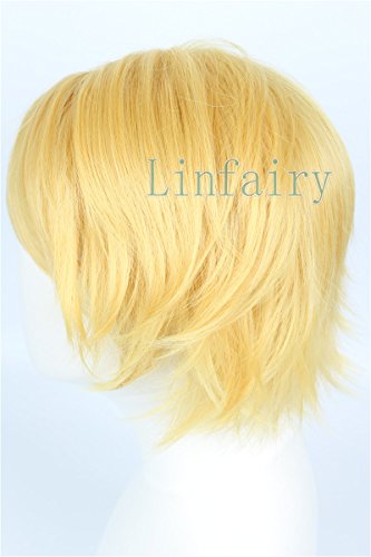 Linfairy Parrucca Cosplay bionda diritta corta parrucca costume di Halloween per gli uomini cantato