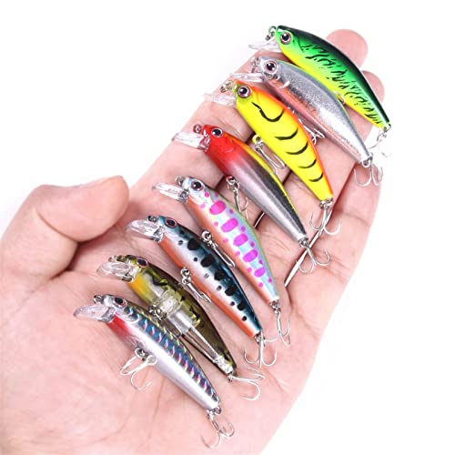 LINFFSTR 10 pezzi 5,5 cm 6,6 g Esche da pesca galleggiante per pesciolini con ancoretta Occhi 3D Esca dura in plastica artificiale Crankbait Wobbler Attrezzatura da pesca Jerkbait Carp Pike Esche da n