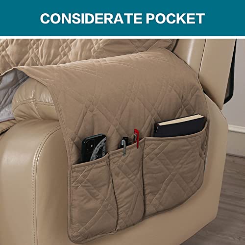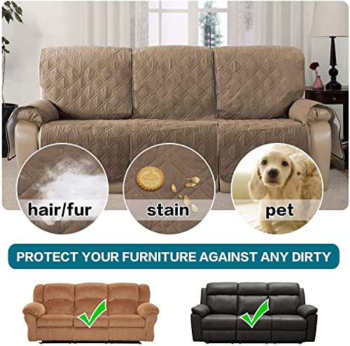 LINFKY Copridivano Reclinabile Impermeabile al 100% Fodera per Divano Reclinabile A 3 Posti per Divano A 3 Cuscini Copridivano Reclinabile con Supporto Antiscivolo E Cinghia (Taupe,3 Posti 208cm)