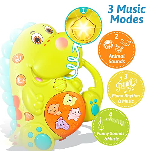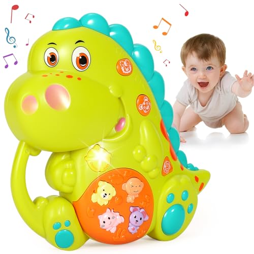 LINFUN KIDS Dinosauro Musicale Giochi Bambini 3 6 12 Mesi, Animali Giocattolo Neonato Montessori Gioco Educativo 1 Anno, Giochi con Musica e Luci Regalo per Prima Infanzia Bimbi Bimbo