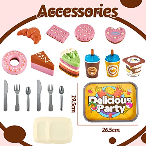 【Cibo Giocattolo per Bambini】 La accessori cucina bambini giocattolo contiene una varietà di torte, budini, biscotti, bevande e altri cibo finto. Alcuni accessori hanno colori casuali.