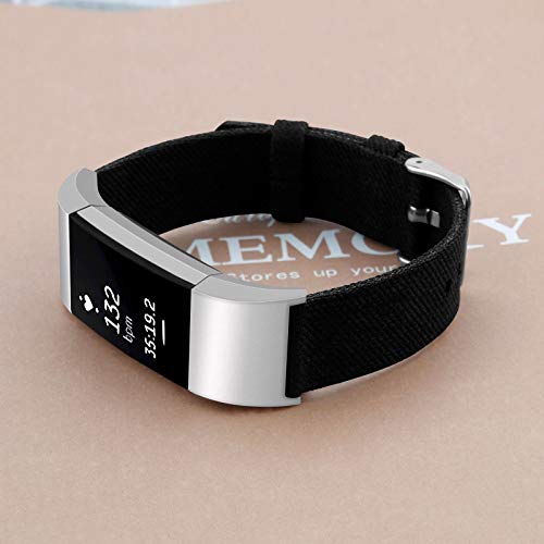 Linghuang Cinturino da Polso Ricambio in Tessuto Compatibile con Fitbit Charge 2 Smartwatch Accessori (S, Nero)