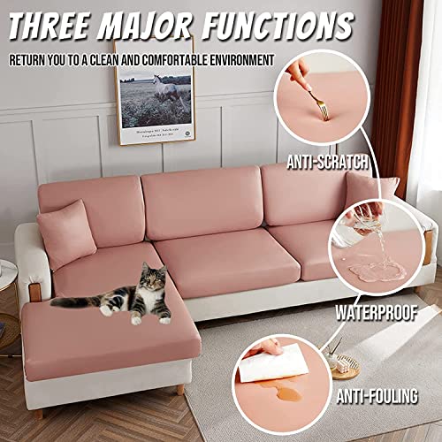 LINGKY Coprisedile per Divano con Penisola 3/4/2/1 Posti Elastico Federa per Cuscino per Divano del Sedile Universale in Ecopelle Copridivano Protezione del Cuscino Sedile (Rosa,Coprischienale)