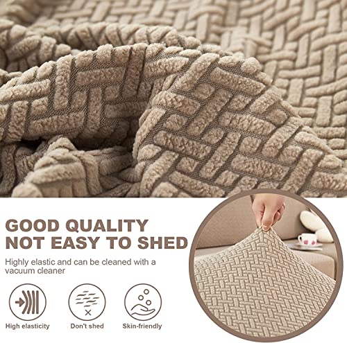 LINGKY Copriseduta Divano Elasticizzato Fodera per Cuscino del Sedile Lavabile per Soggiorno Divano Componibile, Copricuscino per Divano con Fasce Elastiche (Tessuto Cammello,1 Posto)