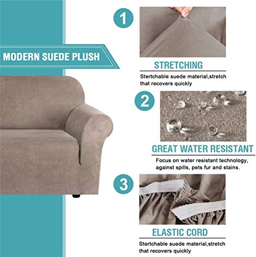LINGKY Fodera per Divano in Velluto Universale, Copridivano in Velluto Elasticizzato per Divano A 1/2/3/4 Posti, Idrorepellente, Vari Colori, Pelle & Scamosciato (Taupe,1 Posto(80-120 cm))