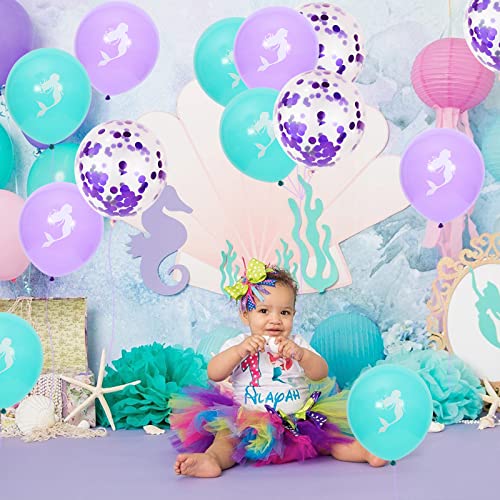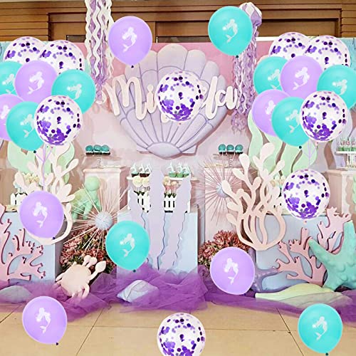Palloncini per feste di compleanno a sirena: questo set di palloncini per feste a tema sirena include 15 palloncini da 30,5 cm, 5 pezzi blu, 5 pezzi viola, 5 coriandoli viola, 5 pezzi viola. 5 pezzi.