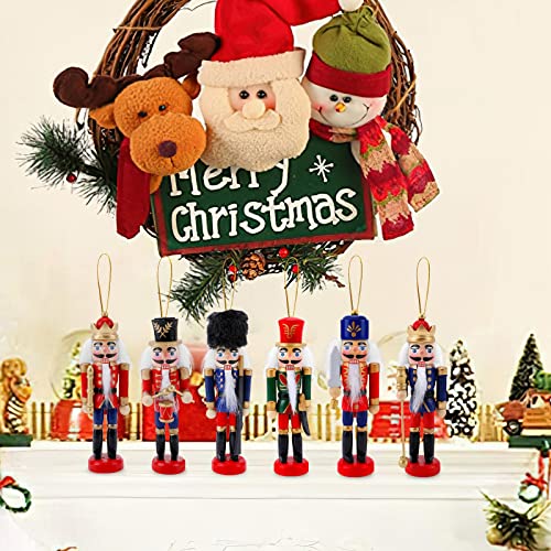 LINGSFIRE 6 pezzi schiaccianoci di Natale, Burattino Soldato Schiaccianoci Di Natale In Legno Di 13 cm, schiaccianoci figure per albero di Natale, decorazione per la casa, feste di Natale