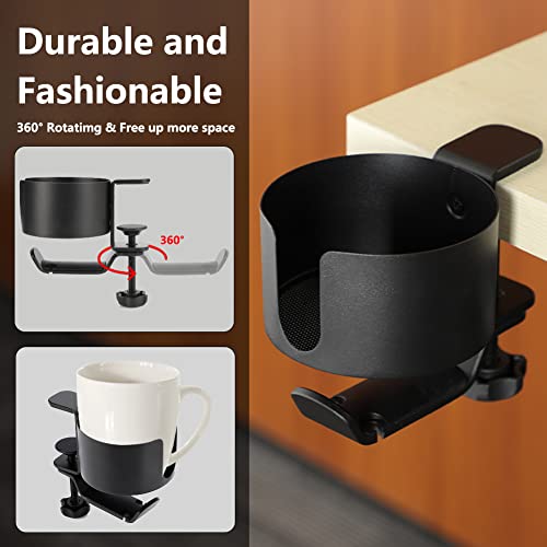 【Facile da installare】 Nessuna colla, nessun bisogno di fori. Dotato di due componenti, 3 viti e un cacciavite in dotazione. Usa due piccole viti per combinare il portabicchieri da scrivania e il supporto per le cuffie in uno. Quindi ruota il morsetto della manopola regolabile per fissarlo sulla scrivania, sull'armadio, sulla torre del desktop, ecc. Può essere installato rapidamente in pochi minuti, offrendoti comodità e ordine.
