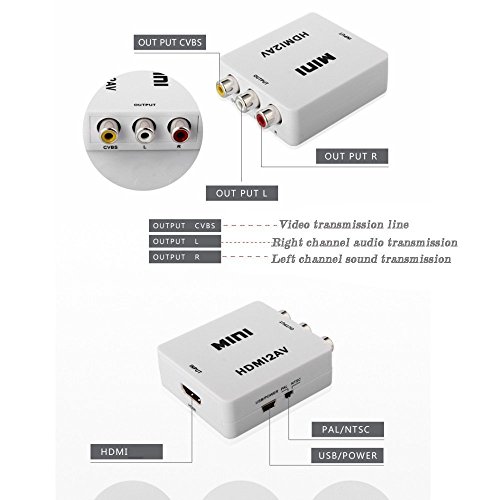 Link-e ®: Adattatore Convertitore HDMI 720P 1080P HDTV verso AV RCA composito CVBS per PS3, PS4, Xbox360, Xbox One, VCR, DVD, Camera, videoprojecteur...