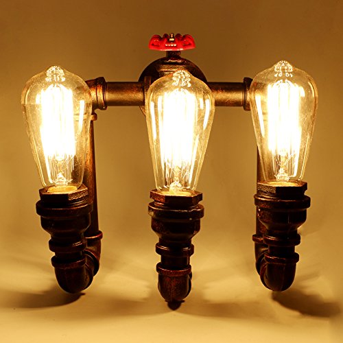 Linkax Lampada da Parete del tubo di acqua Industriale Dell'annata Retro 3 teste di Parete Del Tubo Luci E27 Edison illuminazione (Lampadine non incluse)