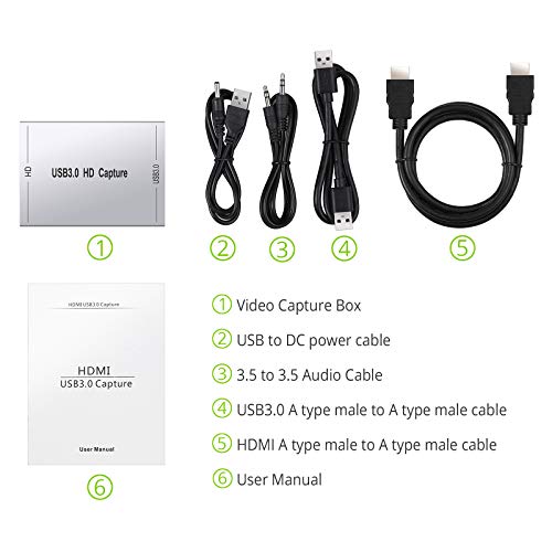 【Scheda di Acquisizione USB 3.0, Supporto Loop-Out HDMI】 Tramite la Connessione USB 3.0 ad Alta Velocità, è Possibile Raccogliere un Segnale Video HDMI ad Alta Definizione di un Canale di Segnale. Rileva Automaticamente Input e Regola Output. Non Ci Sono Ritardi Quando si Utilizza la Porta Loop-out HDMI. Quando si Gioca a Giochi dal Vivo, la Porta Loop-out HDMi è Molto Utile