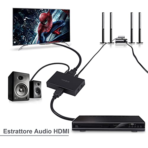 【Estrattore Audio】Convertitore Digitale ad Analogico, Porta Aggiuntiva L+R RCA e Audio Ottico. Può Estrarre Sincronamente il Segnale Audio Digitale a 2 Audio Analogico, i Quali Possono Essere Collegati al Tuo Amplificatore.
