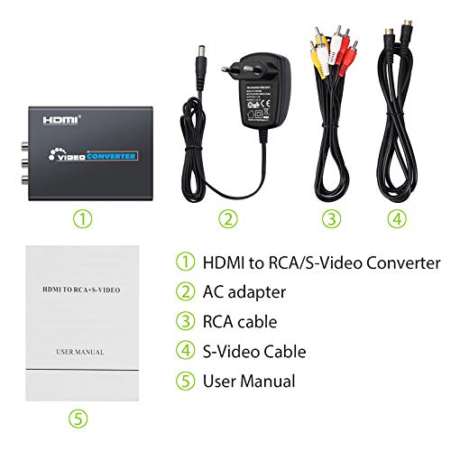 LiNKFOR Convertitore HDMI a Composito 3RCA AV S-Video R L con Alimentatore Upscaler Adattatore Audio Video Supporta 720P 1080P con Cavo RCA e S-Video per PC Laptop PS3 TV VHS Blu-Ray DVD VCR