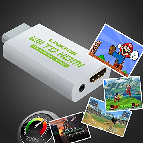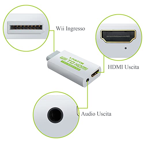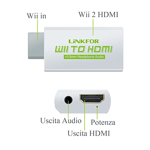 LiNKFOR Wii HDMI Convertitore/Convertitore Wii a HDMI 720P o 1080 P Convertitore Video Adattatore HD HDTV + 3.5MM Audio - Colore Bianco