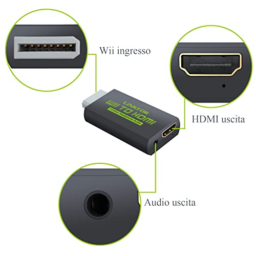 LiNKFOR Wii HDMI Convertitore/Convertitore Wii a HDMI 720P o 1080 P Convertitore Video Adattatore HD HDTV + 3.5MM Audio - Colore Nero