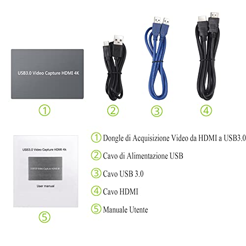 LiNKFOR 4K 60Hz HDMI 3.0 Scheda Acquisizione Video con HDMI Loop out Video Grabber Dongle Cattura Video Gioco 4K HDMI a USB3.0 1080P con Ingresso Microfono Uscita Audio per Windows Linux OS - Grigio