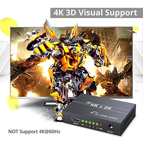 【Supporta 4K 3D】HDMI 1.4 Splitter Supporta 3D, 4K@30Hz, Alta Risoluzione Fino a 3840x2160 / 30Hz, Colore Profondo 408i / 576i / 576p / 720p / 1080i / 1080P, Fornendo Video Chiaro. NON Supporta 4K@60Hz.