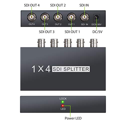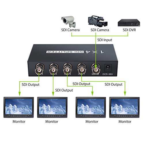 LiNKFOR 1X4 SDI Splitter con Alimentatore Supports SD-SDI 1320Ft / HD-SDI 660Ft / 3G-SDI 330Ft 1080P SDI Splitter Reapeter 1 In 4 Out Supporta Solo Cavo BNC per CCTV Videocamera a SDI Monitor