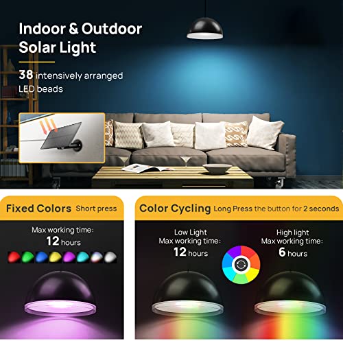 RGB e luce bianca fredda: il riscaldatore solare Linkind funziona per 12 ore in modalità colore fisso (8 colori diversi, incluso bianco freddo 6500K), 12 ore in modalità ciclo colore a bassa luminosità e 6 ore in modalità ciclo colore ad alta luminosità. Sarà Auto ON di notte e Auto OFF all'alba.