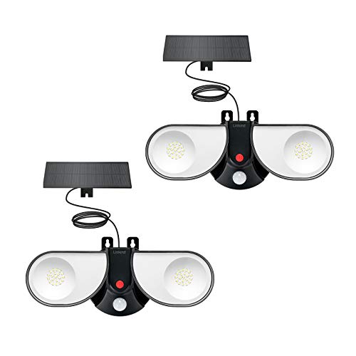 Linkind Guard 2 lampade da parete a energia solare con sensore di movimento, ultra luminose, 1000 lm, a 2 teste, 6500 K, luce diurna con angolo di diffusione di 300°, IP67, impermeabili
