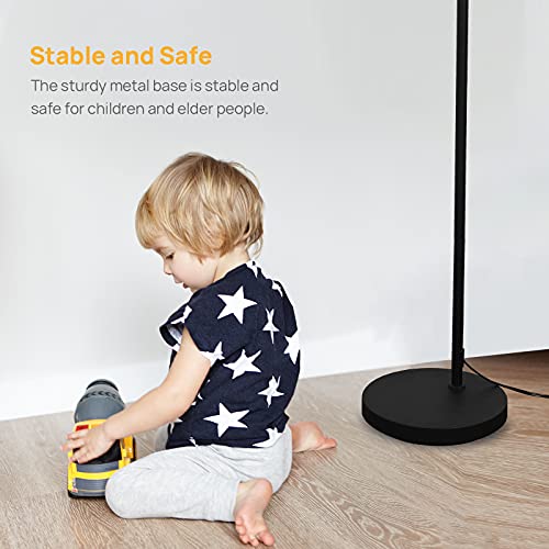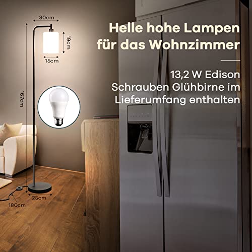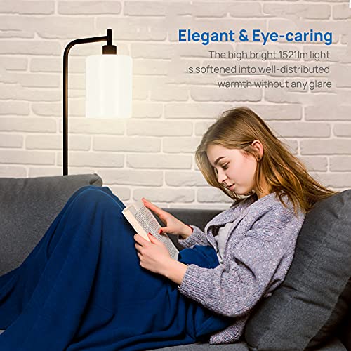 Linkind LED Lampada da Terra, Lampade Salotto con Lampadina E27 Bianca Calda, Piantana con Paralume in Vetro Smerigliato Bianco per Soggiorno Camera, Nero