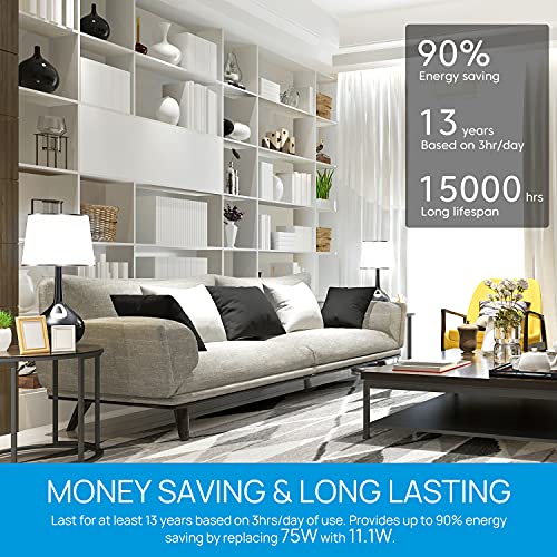 RISPARMIO ENERGETICO E SOSTENIBILE: le lampadine LED da 11,1 W si abbinano alle tradizionali lampade a da 75 W e risparmiano fino al 90% di energia. La durata è di 15.000 ore (circa 13,7 anni, 3 ore al giorno).