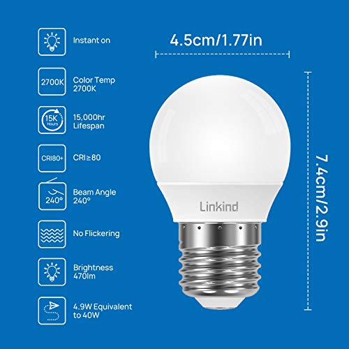 Linkind Lampadina LED E27, Golf P45/G45, 4,9W(Equivalenti a 40 W), Luce Bianca Calda 2700K, 470 Lumen, Faretto con Angolo del Fascio 240 Gradi, AC 220-240V, Non Dimmerabile, Pacco da 6