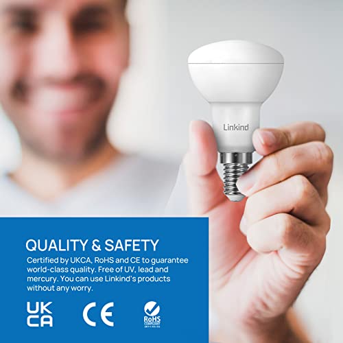 [Faretto LED a risparmio energetico] - Consumo energetico estremamente basso con classe A +. La lampadina LED Linkind R50 E14 bianco freddo è ideale per sostituire le classiche lampade ad incandescenza da 40W. Rispettoso dell'ambiente e risparmio energetico.