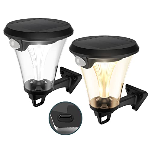 Linkind Luci Solari Esterno Vintage con Sensore di Movimento, 3000K/6500K Lampada Solare da Parete con Porte Base di Ricarica (Type-C), Lanterna Solare Impermeabile IP65 per Giardino, 2 Pezzi