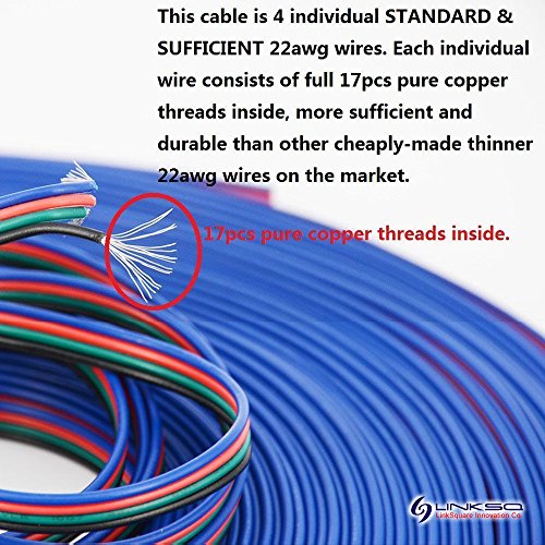 LinkSquare 5m/10m/20m 4 Perni Collegamento Wire Cavo Dati Filo di Estensione Cordone di Linea Prolunga Connessione per Striscia di RVB (RGB) LED SMD (20 Metri)
