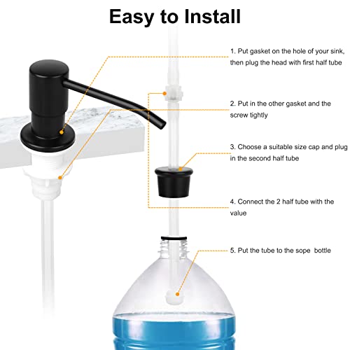 Linkstyle Dispenser di Sapone per lavello da Cucina, Pompa dell'Acqua da appoggio in Nichel Spazzolato con Tubo in Silicone da 48" Che Si collega alla Bottiglia di Sapone per Bagno e Piatto, Nero