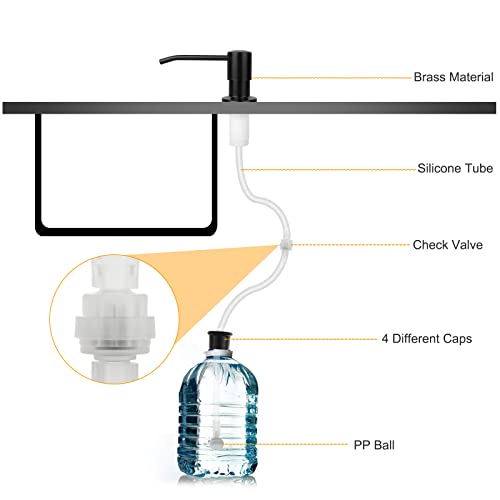 COMBINAZIONE PERFETTA: dotato di un tappo di bottiglia ad alta elasticità, che può prevenire efficacemente il versamento accidentale del liquido. Una valvola di pressione aumenta notevolmente l'aspirazione del distributore di sapone.