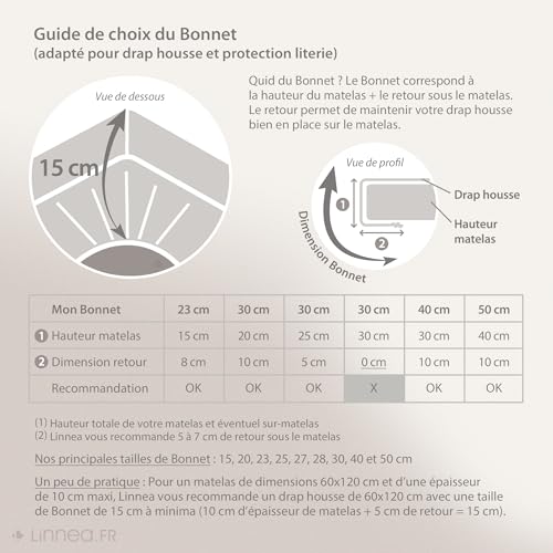 Telo protettivo impermeabile 70 x 150 cm ARNON forma lenzuolo con angoli da 15 cm per materassi fino a 12 cm - Pile laminato poliuretano silenzioso e microrespirante - facile manutenzione, lavaggio a 95 °C, asciugatura a tamburo - Made in France