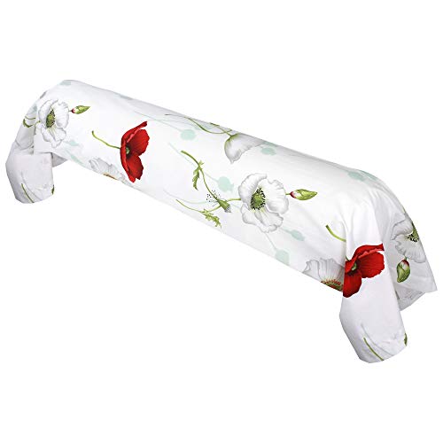 Federa 43 x 140 cm percalle di puro cotone pettinato 78 fili/cm2 - atmosfera molto elegante con le sue note floreali ai campi di papaveri, colore rosso e verde su sfondo bianco